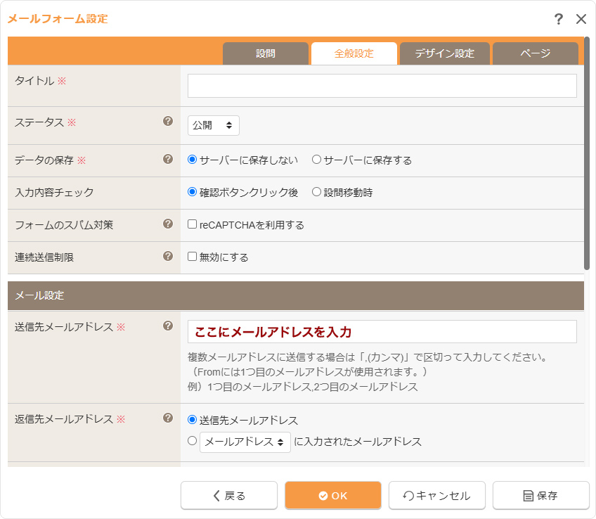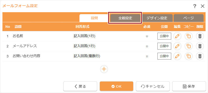 メールフォームを使ってお問い合わせフォームの内容を設定します。