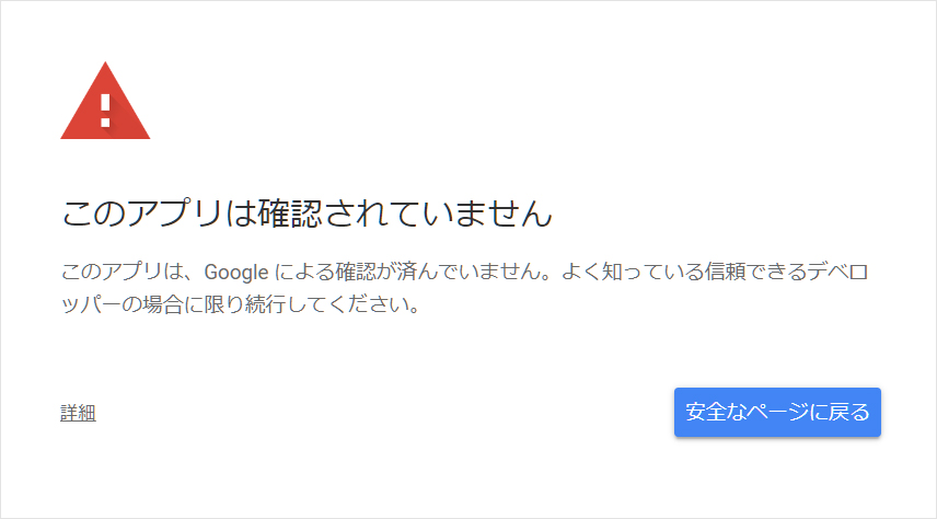 Googleアカウントの認証をしようとすると「このアプリは確認されていません」と表示される